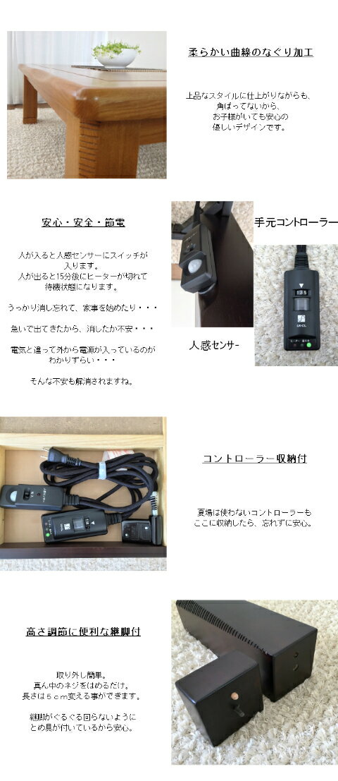 【こたつ 長方形 120】【こたつ激安】「有田-120人感」こたつテーブル こたつ 天然木 家具調 コタツ 炬燵 こたつ長方形120 リビングテーブル 座卓 タモ材 継脚 和風 暖房器具 人感センサー機能付き【消費税込み】【送料1000円】