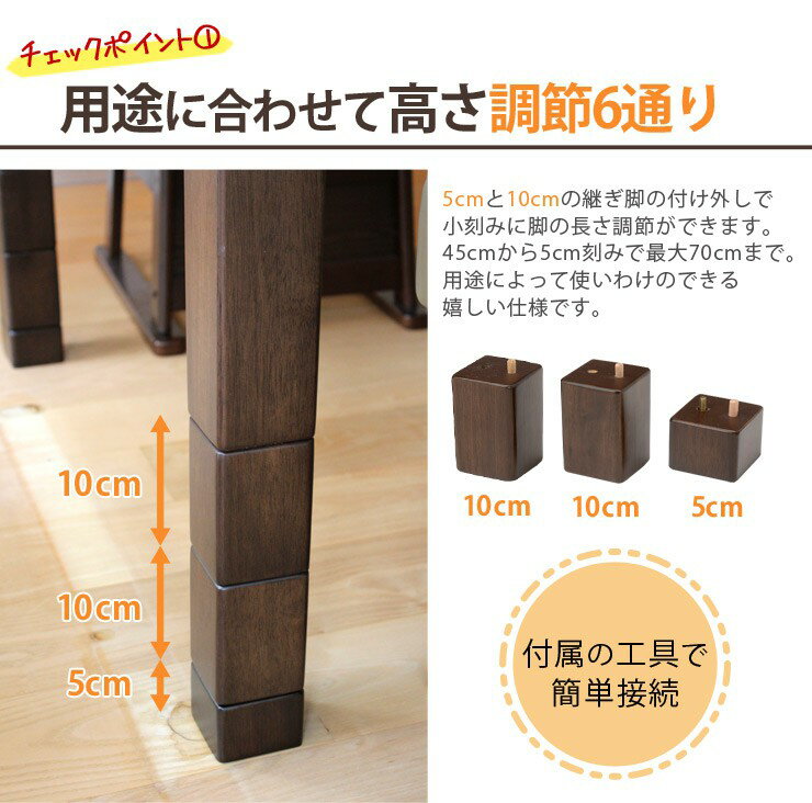 《萩原》ダイニングこたつ 多機能こたつテーブル 幅105cm継脚付き 高さ6段階調整 長方形 暖房器具 コタツ 炬燵 石英管ヒーター 人感センサー 手元電子コントローラー ローテーブル 省エネ オールシーズン使用可能 リビングテーブル ンプル 木製 kot7310dbr105
