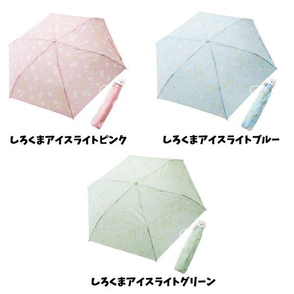 キャラクター:しろくま、ねこ、とかげ、ぺんぎん(本物) カラー:ライトピンク、ライトブルー、ライトグリーン 付属品:収納ケース サイズ 開いた時の直径:約86cm 収納時:全長約23×幅6×奥行6cm 素材 生地:ポリエステル 親骨:鉄 シャフト:アルミ ハンドル:プラスチック 生産国:中国 安全ろくろ仕様