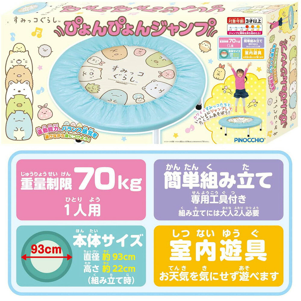 対象年齢:3才以上 / 1人用 制限重量:70kg すみっこぐらし トランポリン 子供 キッズ 子供用 運動能力 バランス感覚アップに 3歳から 室内運動 インドア レクリエイション スポーツ キッズ おもちゃ クリスマス お誕生 ギフト プレゼント アガツマ AGATSUMA ピノチオ サンリオ サンエックス(C)2020 San-X Co.,Ltd. All Rights Reserved.