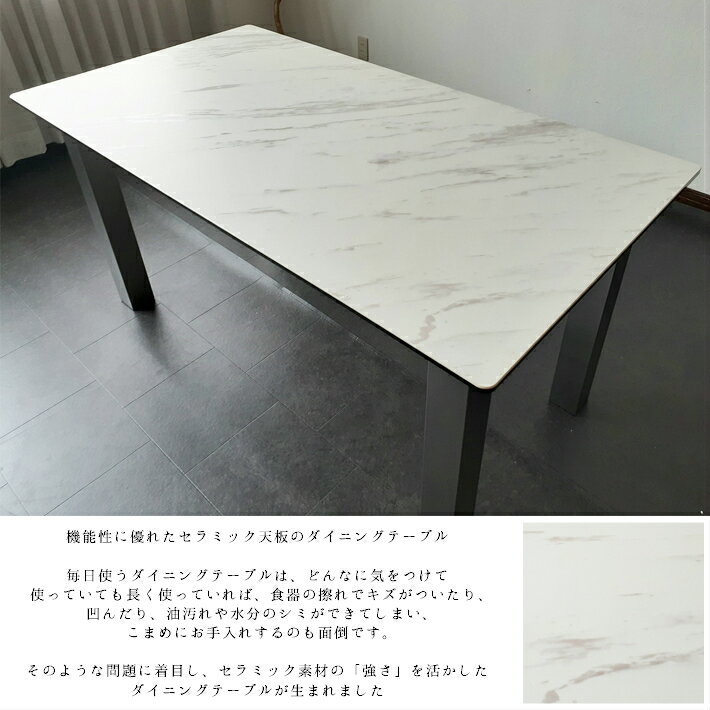 * 3%OFFクーポン 配布中4/28 1:59迄 150cm幅 ダイニングテーブル セラミック セラミックテーブル 150DTRX 4人用 モダン 北欧 高級 食卓 ホワイト グレー 強化ガラス キズに強い 耐熱