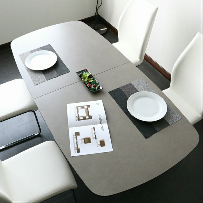 ) ■サイズ (テーブル) ・幅 180cm - 220cm ・奥行き 85cm ・高さ 73cm (チェアー) ・幅 44cm ・奥行き 59cm ・高さ 97cm(座面まで45cm) ■材質 ・イタリアンセラミックトップ/強化ガラス ・ステンレス ・PVC (合成皮革) ・スチール ■備考 [機能性に優れたセラミック天板のダイニングテーブル] 毎日の食事で使うダイニングテーブルは、どんなに気をつけて使っていても長く使っていれば、 食器の擦れキズがついたり、凹んだり、水や油汚れのシミができてしまいます。