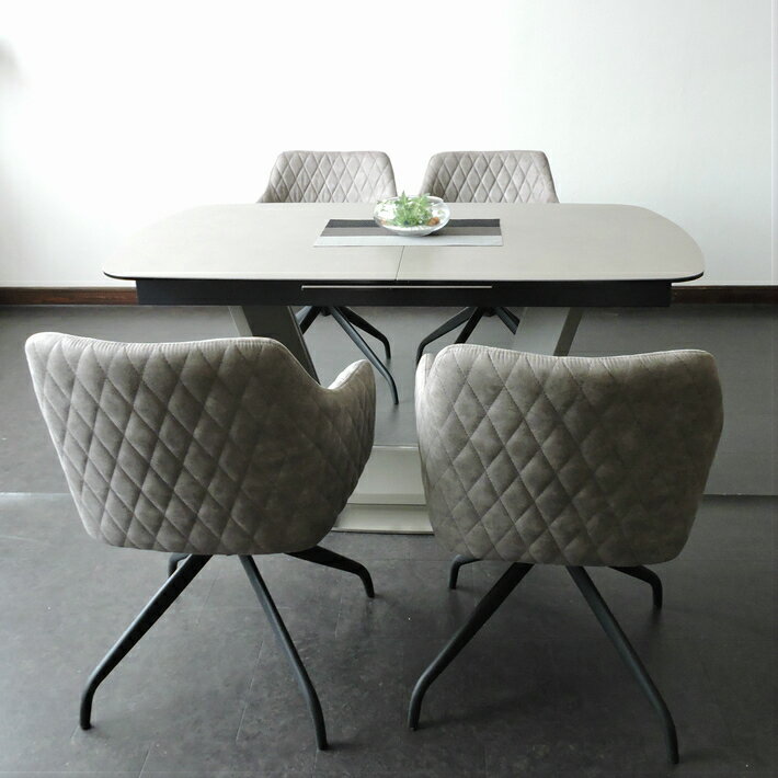 ダイニングテーブルセット セラミック イタリアンセラミックテーブル 伸張式ダイニングテーブル 140cm幅 180cm幅 ダイニングテーブル 伸長式 140BRSE 4人掛け モダン 食卓 ダイニング5点セット 強化ガラス レザーファブリック 回転チェア