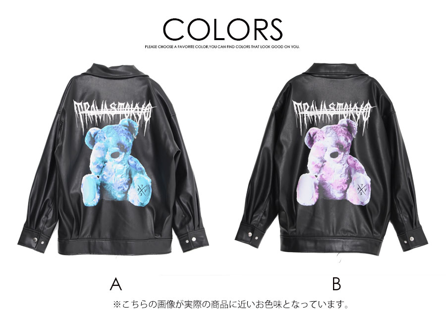 TRAVAS TOKYO【トラヴァストーキョー】バッククマプリントライダースジャケット/全2色"【返品・交換対象商品】【あす楽対応】ライダース くま クマ 原宿系 服 メンズ ファッション ビッグシルエット レディース ジャケット