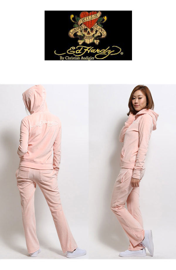 ed hardy エドハーディー ベロア セットアップ レディース ED HARDY 上下セット ピンク W08EVL005 エド・ハーディー タトゥー ルームウェア ジャージ