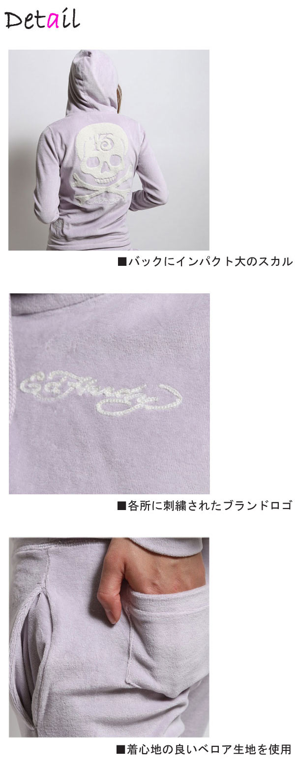 ed hardy エドハーディー ED HARDY ベロア セットアップ レディース 上下セット スカル パープル W08EVL552 エド・ハーディー タトゥー ルームウェア ジャージ